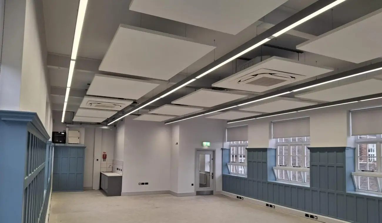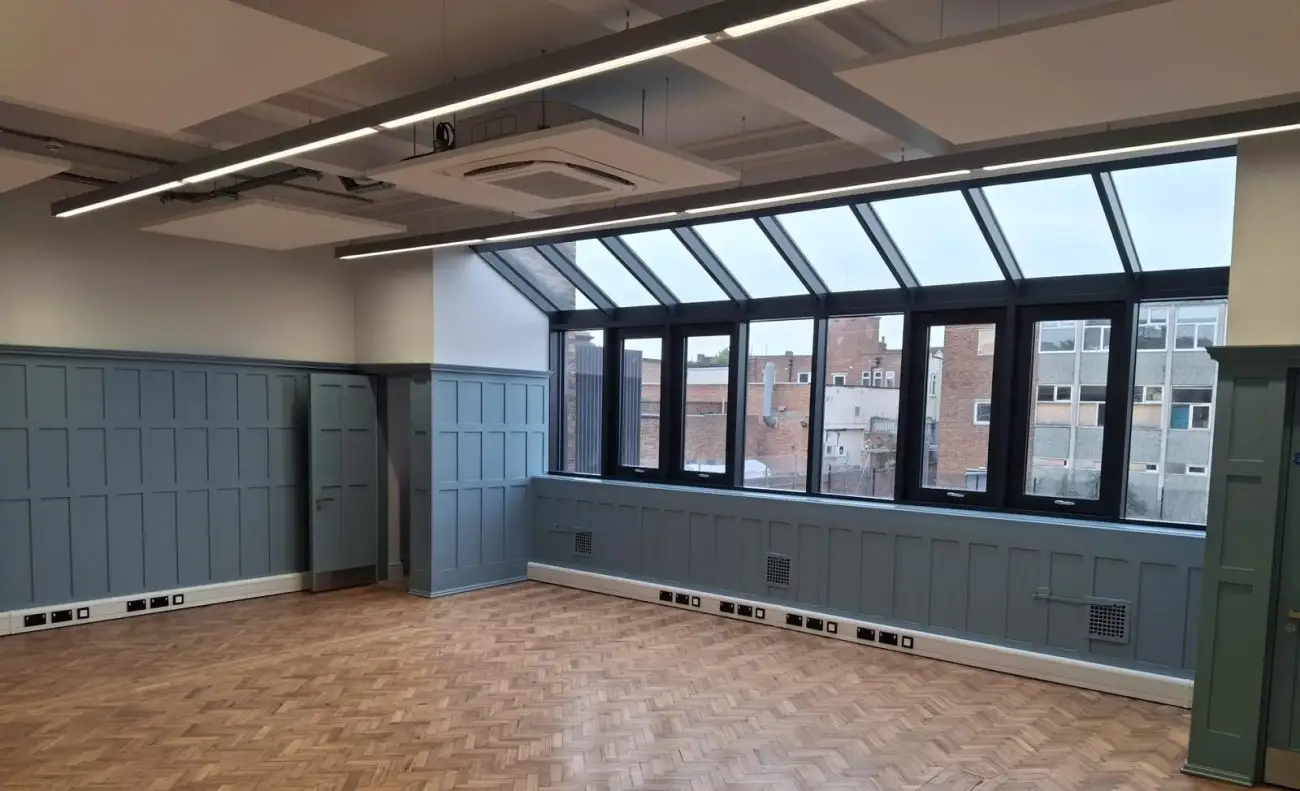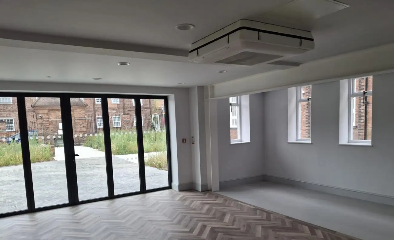 Our team designed fully electric M&E systems, including an energy-efficient VRF heating and cooling system and air source heat pumps. Insulation upgrades enhanced the building’s energy performance, while smart wireless lighting was integrated using existing containment. Fibre-ready infrastructure was also installed to meet modern digital demands.